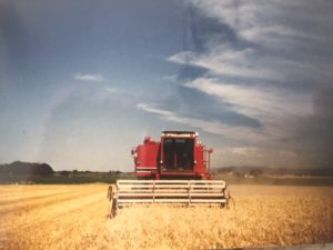 We drove past the field where I learned how to run the combine and cut grain. My rows may have been a bit wavy and not straight. That could have had something to do with Saralee Cathcart sitting next to me. 😛